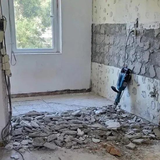 Kod rušenja zidova koristimo adekvatne mašine u zavisnosti od vrste zida sa pažnjom na što brži, a sa što manje buke završetak posla.